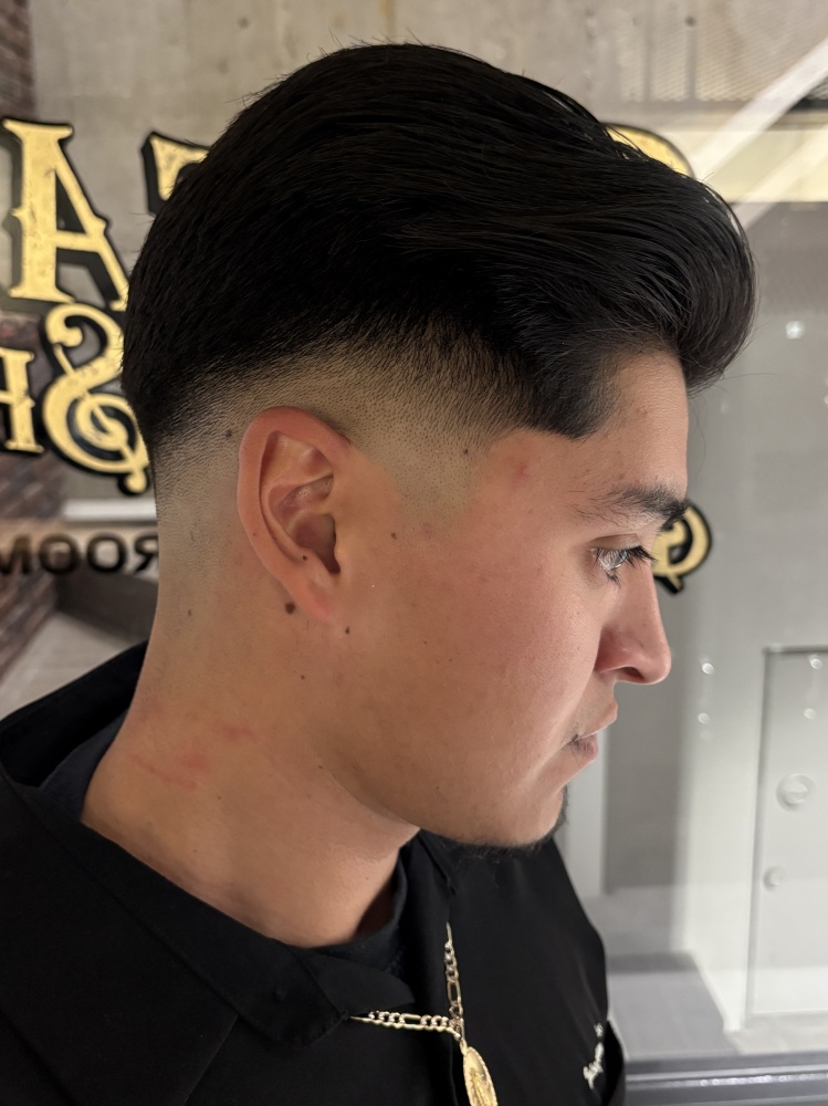 一般的には写真のようなミドル以上のスキンフェードですることが多いのですがクラシックなスタイルが好きな方にはテーパーフェードや刈り上げないパターンもおススメです!