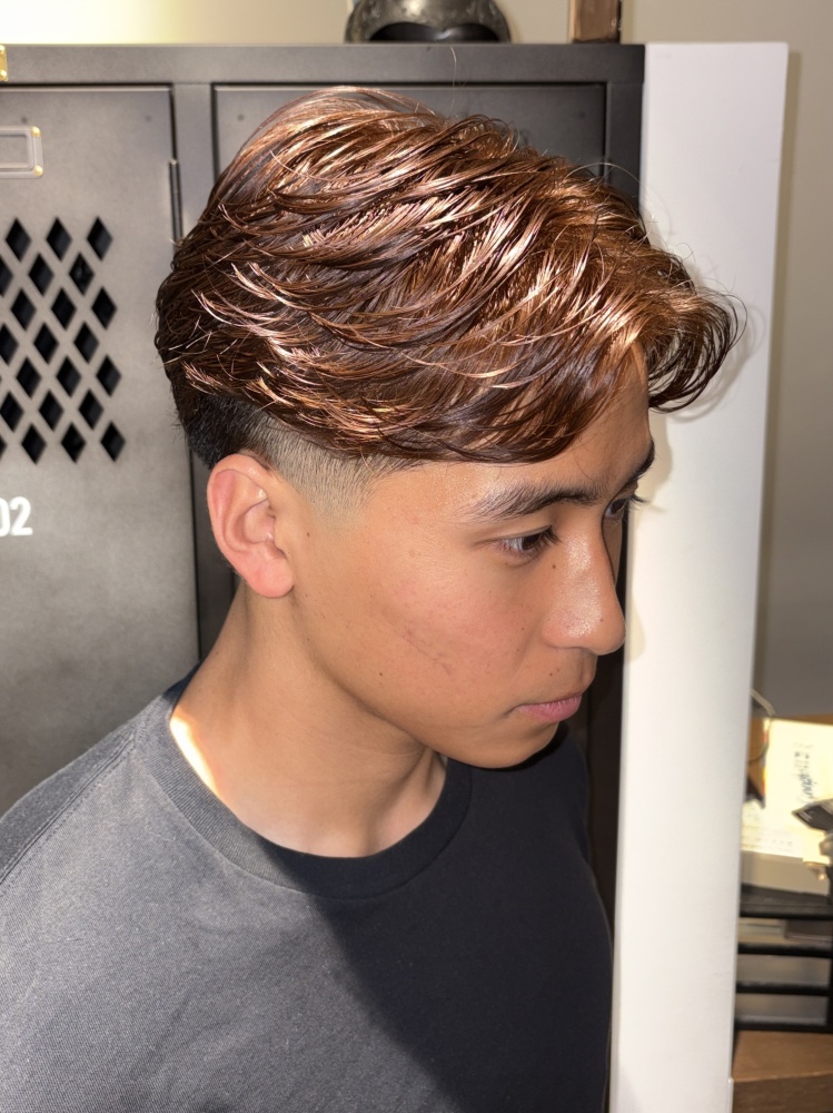こちらも横と後ろはスキンフェードにして上がレイヤーを入れてパーマで毛流れを作ってあげるスタイルになります!